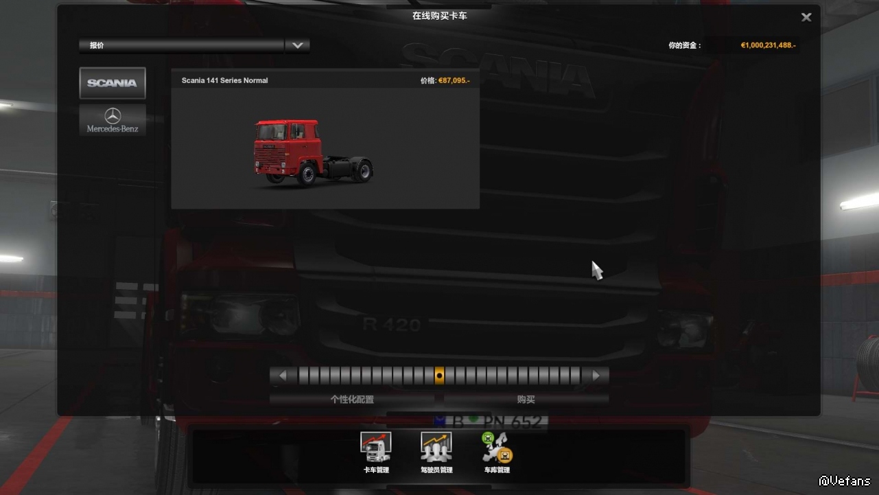 下了个1.35的scania141,进了游戏发现买不了,但车辆查看器(是叫这个名字吧)可以正常打开,求大佬授教谢谢