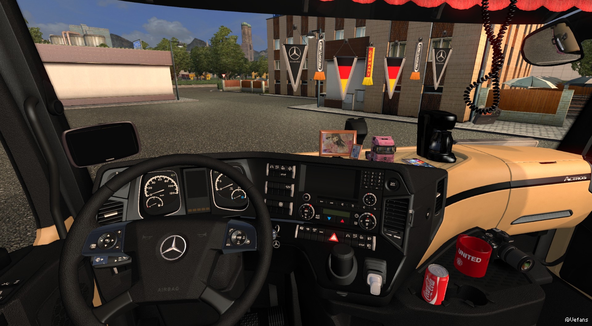梅賽德斯賓士新款ACTROS。中控臺位置沒法放Table是個小遺憾。