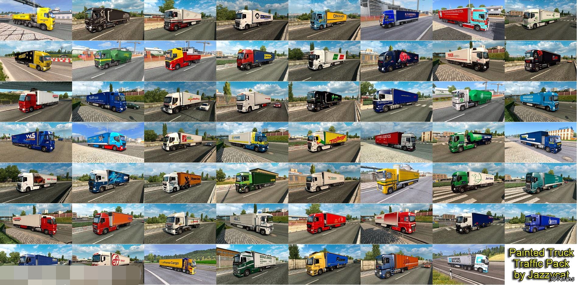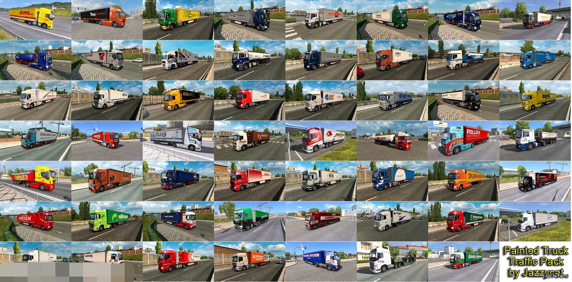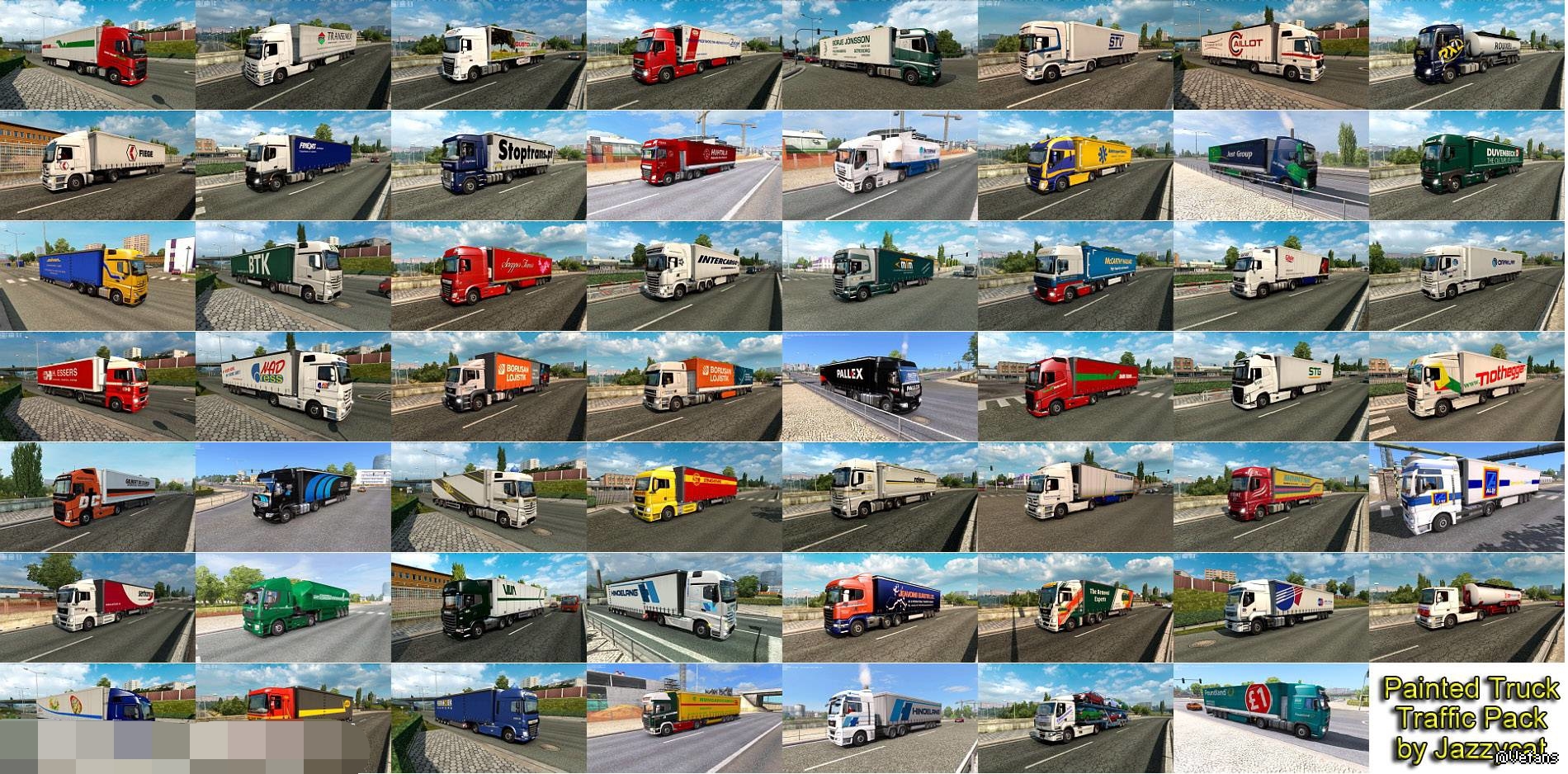 Pack adds in traffic truck+trailer combo with skins of 367 real companies.