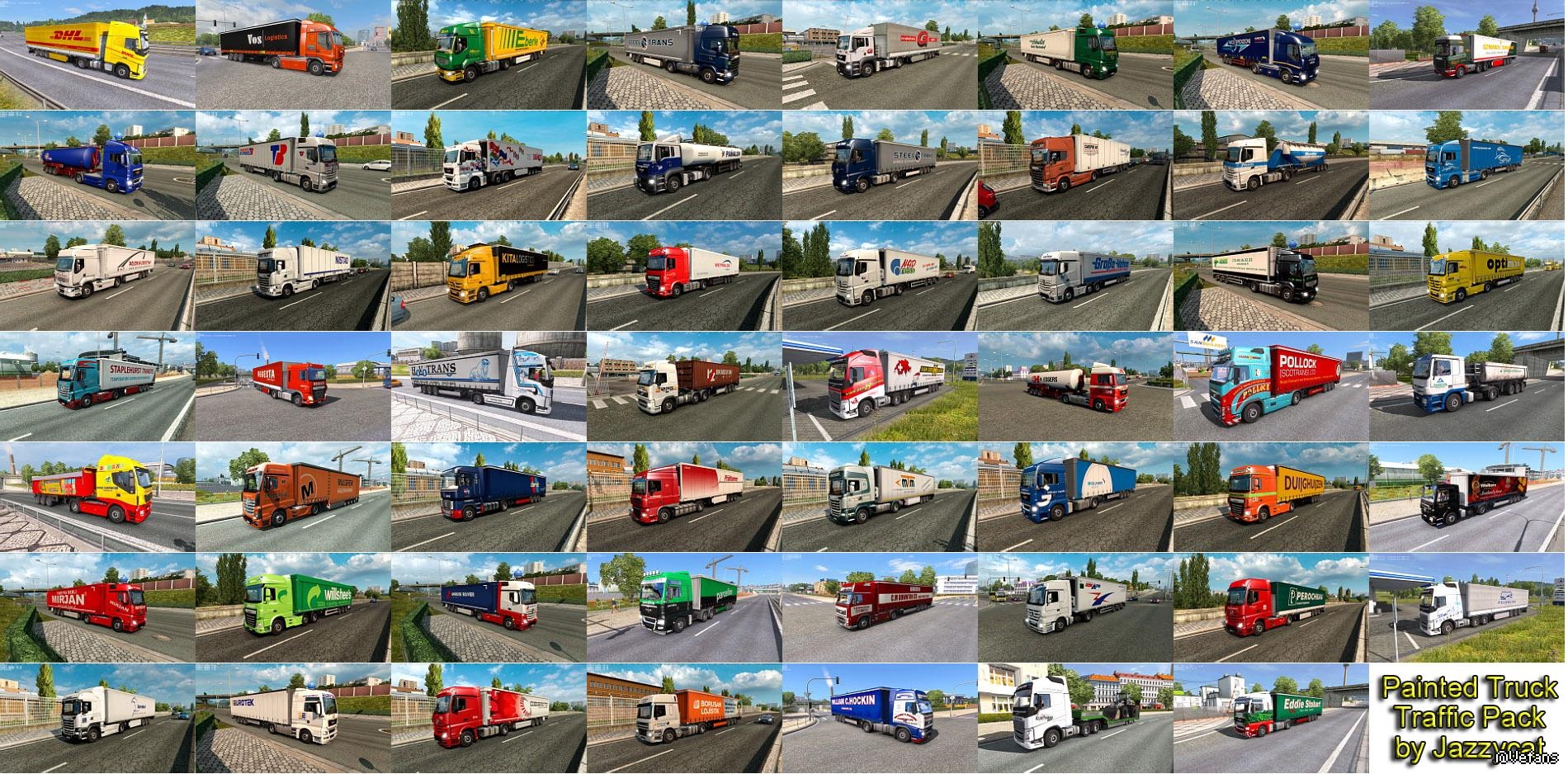 Pack adds in traffic truck+trailer combo with skins of 393 real companies.