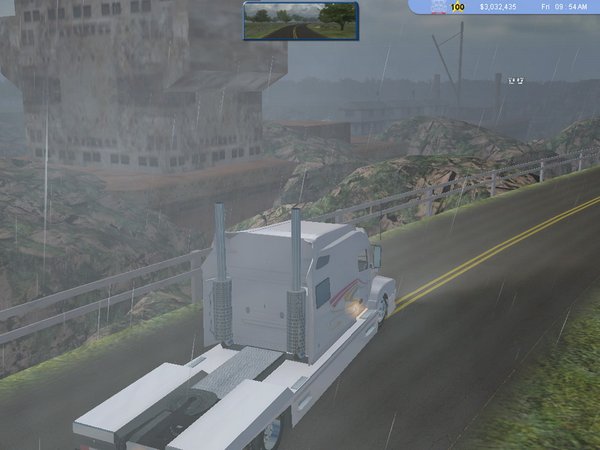 此地图和原版一样也是美国板块,但却取消了西部风格,用“山清水秀”代替了,虽然没有了西部风格,但一点没有降低游戏的可观性,反而有过之而无不及。你会发现道路的复杂程度、景物可观性、真实性(也加入了一些科幻元素)是这系列中前所未有的。到处是绿色的山林、峡谷、小山丘、平原,和连连不绝的河川,所有景物都非常有连贯性,看不到空隙,让人看了非常舒服,没有厌倦感。而且高低起伏的道路、国道与高速的交错,很有真实感(很多斜坡非常考验车辆的性能),有很多具有现代感的高架桥。