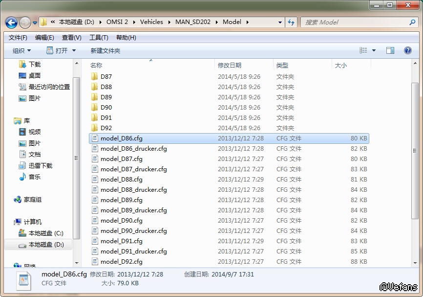 ①打开 Model 文件夹下的 model_D86.cfg(用任意文本输入软件打开即可,如写字板、Word、Notepad)