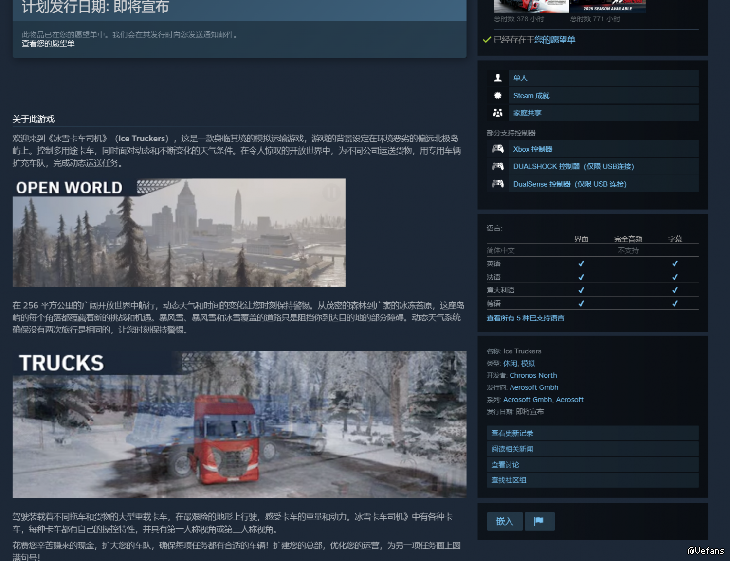 随便搜了下steam 看到这两款。 澳洲那个好像已经TBA很久了 还是在开发 不过好像快了 之前还有款阿拉斯加卡车司机应该有人发过贴了 就不提了