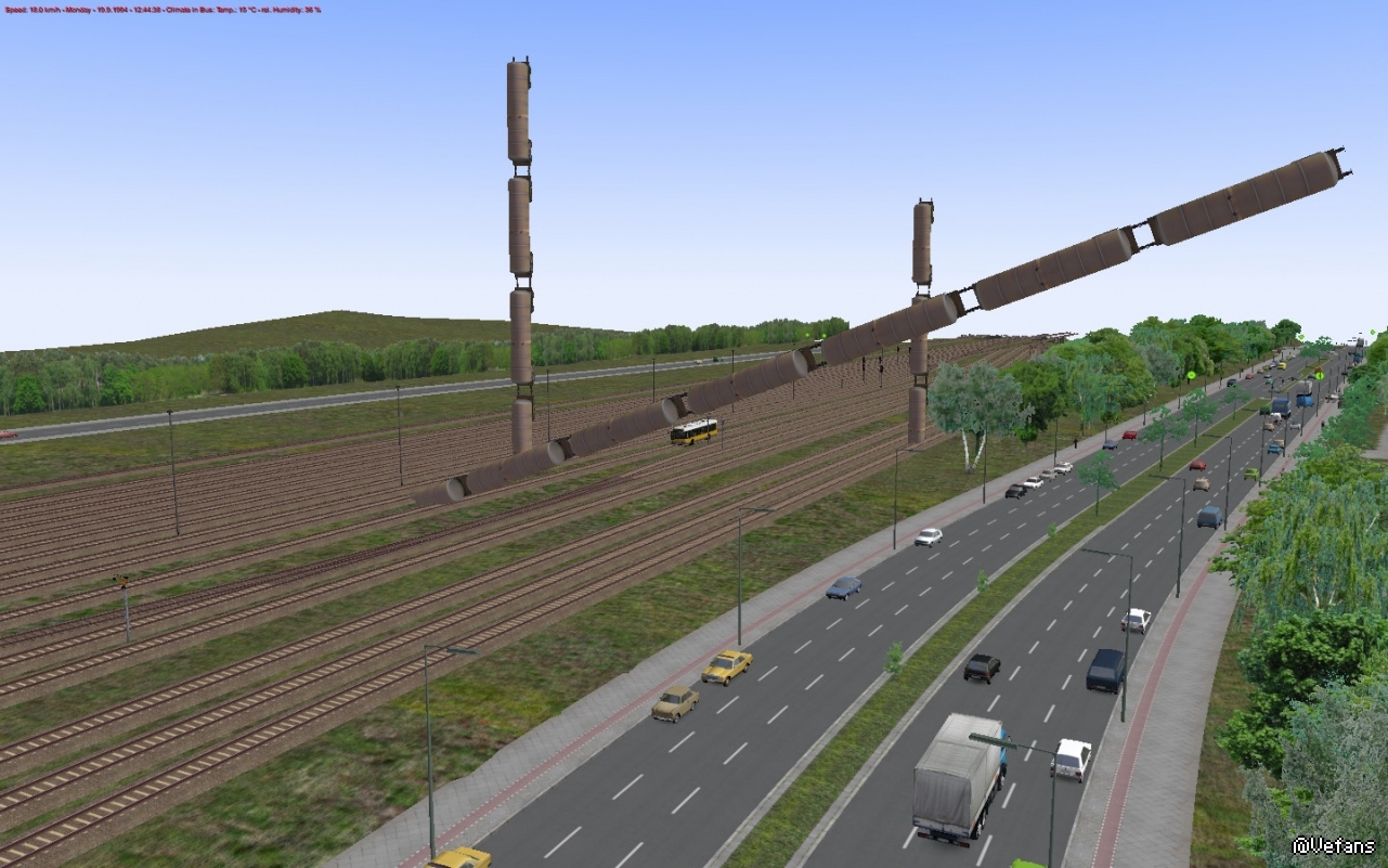 因为斯潘道的火车线路需要维修,所以相关部门派我来施工维修,我开着公交车就去线路上了