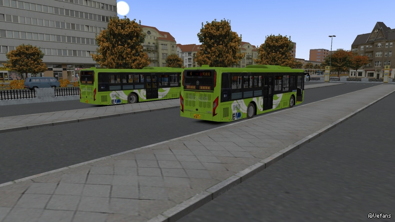 金河南站场站及待发车辆 绿色祥云涂装对应北京六代广通(实际车辆电机不同布局不同)