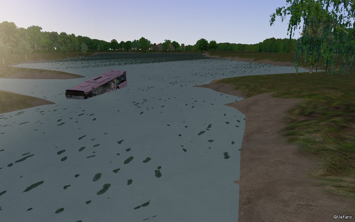 德国柏林一辆公交车冲进了河里,事故原因正在调查中,下面是事发现场