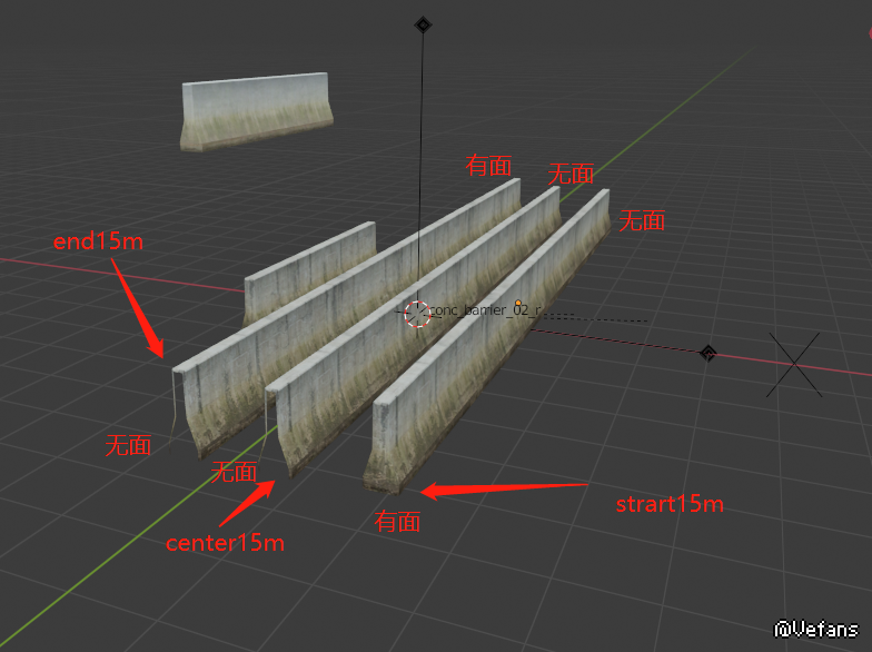 的概念,那就是有头与有尾之分,起始模型需要有一个法向朝外的面,也就是有一个封闭的面给玩家看到。而另一端则是没有面的。如果另一端有一个面,有几