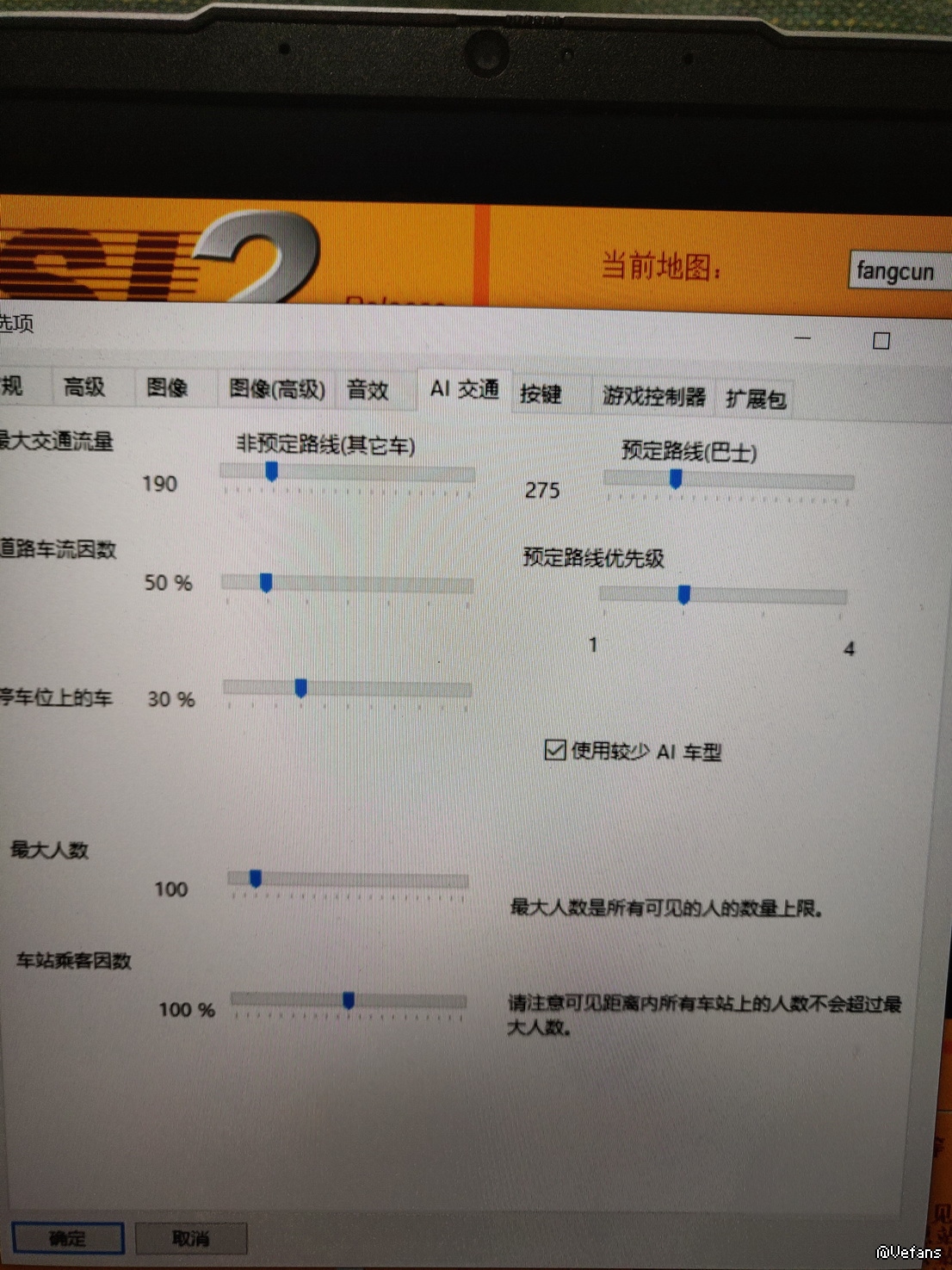 回复6楼、7楼,我之前标题表达得有点偏差,已经更改标题。如您所说,改掉AI巴士的型号确实可以杜绝系统自动生成AI巴士,但因为之前用V1200当AI车时候屡次卡死或跳车(我还是压过贴图)的惨状,考虑到处理器频率和显卡确实不是很高配,只能放弃这样的想法。
