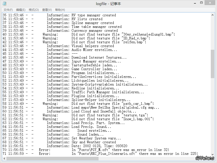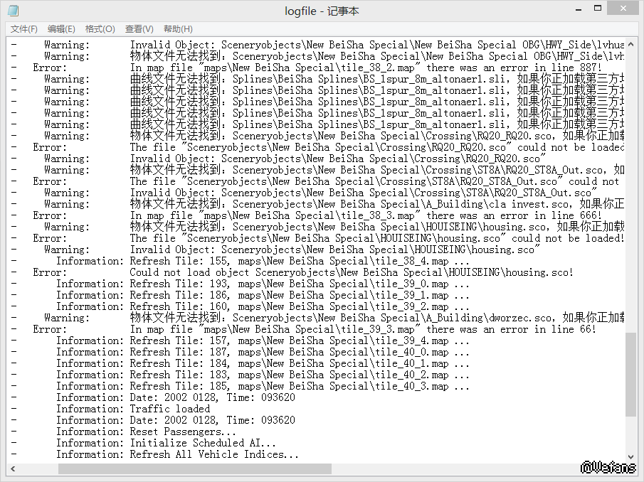 请再次运行游戏并加载地图,然后在附件里面发一下游戏目录的logfile.txt给我,我帮你看看
