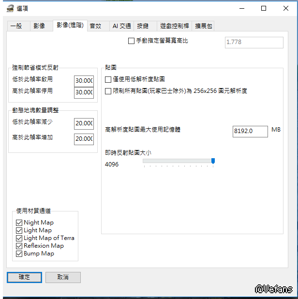 可以試把「即時反射貼圖大小」下調至512