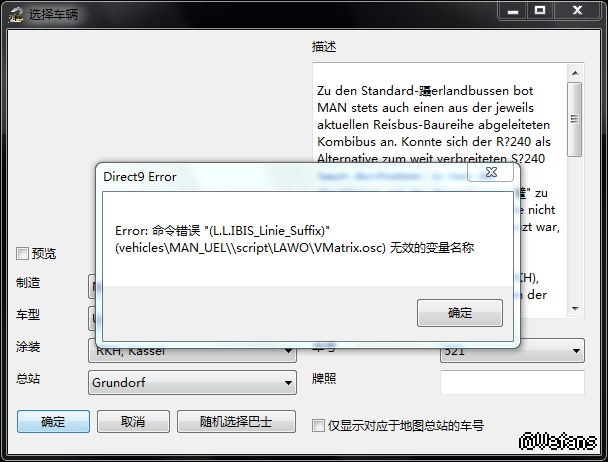 你有安装O305的车吗,之前的下载帖子里说必须要有O305,因为这车子很多程序是直接套用O305的,没有这辆车就没有办法加载。如果是Almex程序没有,就随便找一个script文件夹带Almex程序的车,比如solaris bvg,把script\Almex文件夹里的所有程序复制到MAN_UEL\script\里面