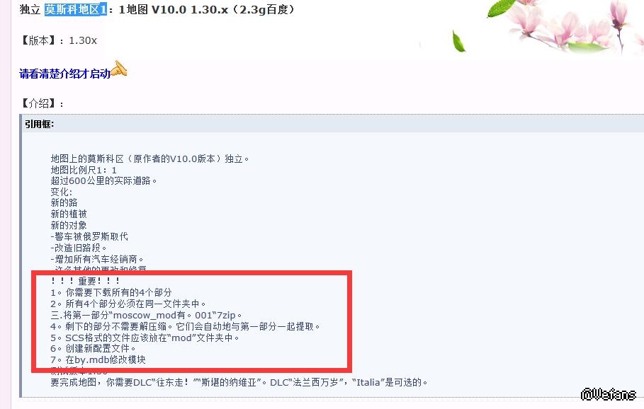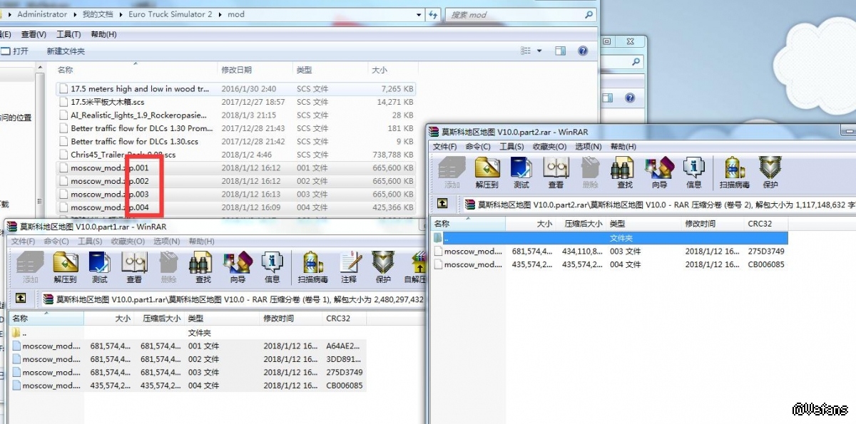 原帖由 volvo700 於 2018-1-17 13:32 發表 不用修改 解压001即可,里面有好像8个scs文件的,依次放入mod文件夹,下载帖上有图例。 用模块by.mdb启动游戏
