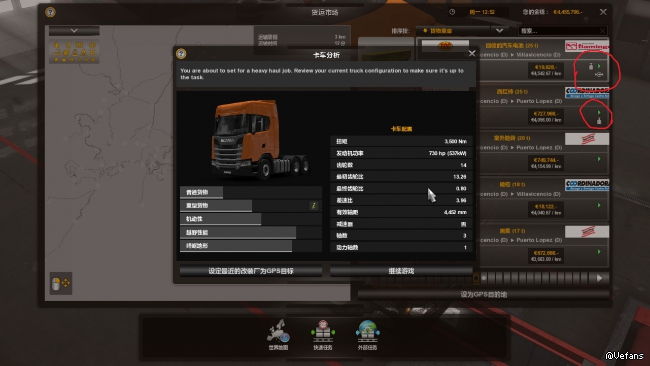 » 如图提示怎样修改卡车参数才可以拉这种货物。。