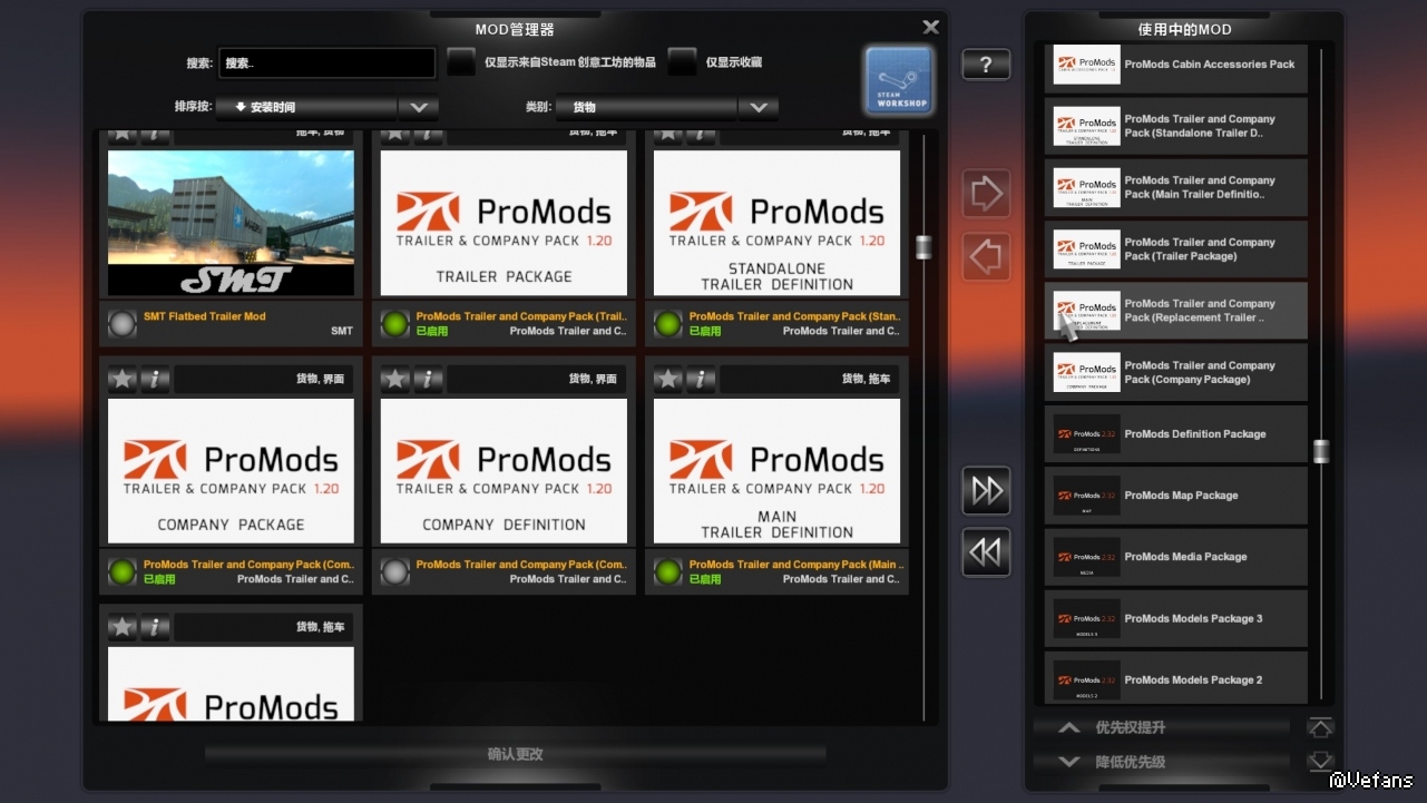 Promods2.32文件怎么加载 ,我为什么少Promods Trailer and Company Pack(Trailer Definition)这个MOD