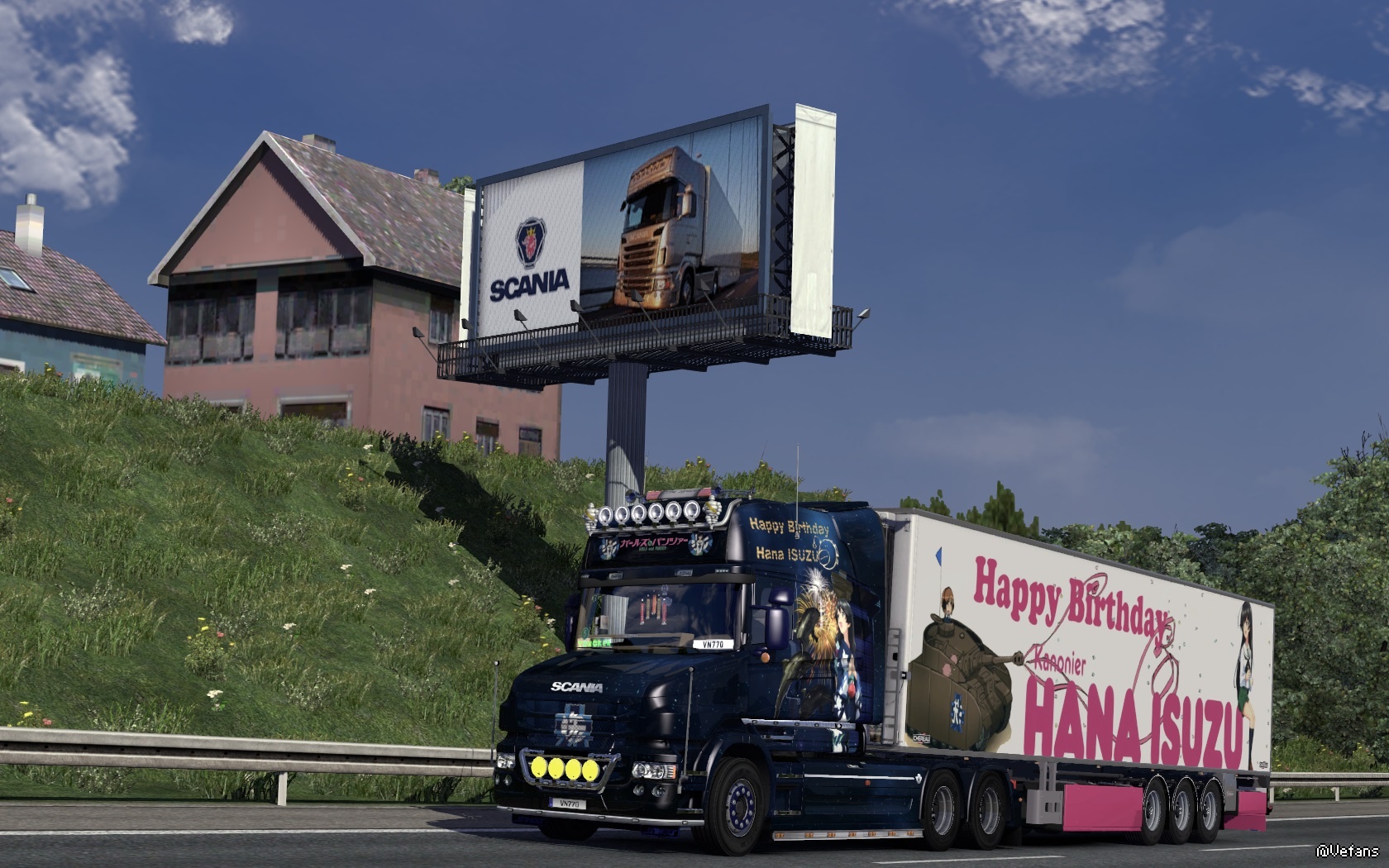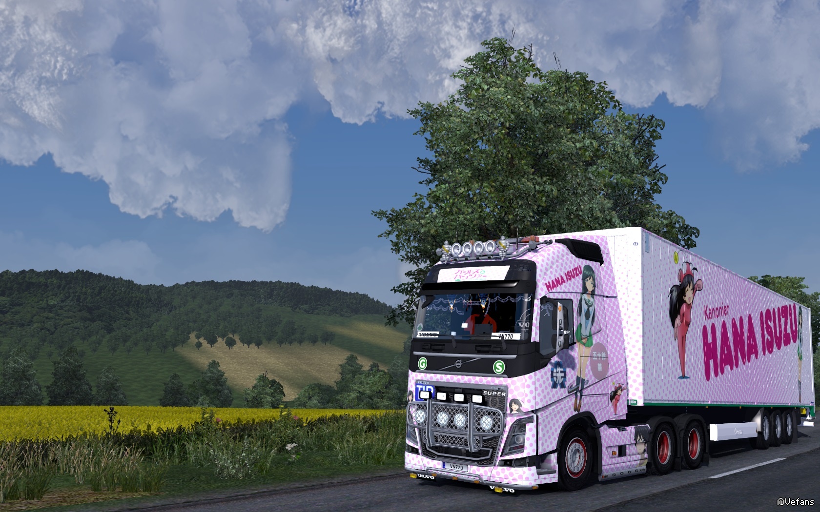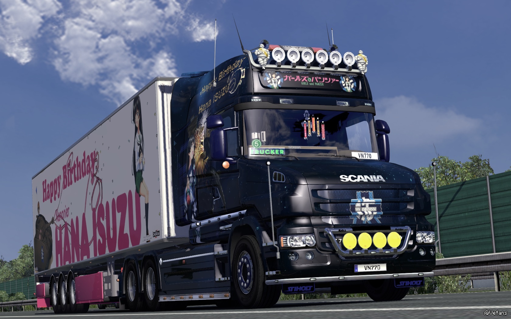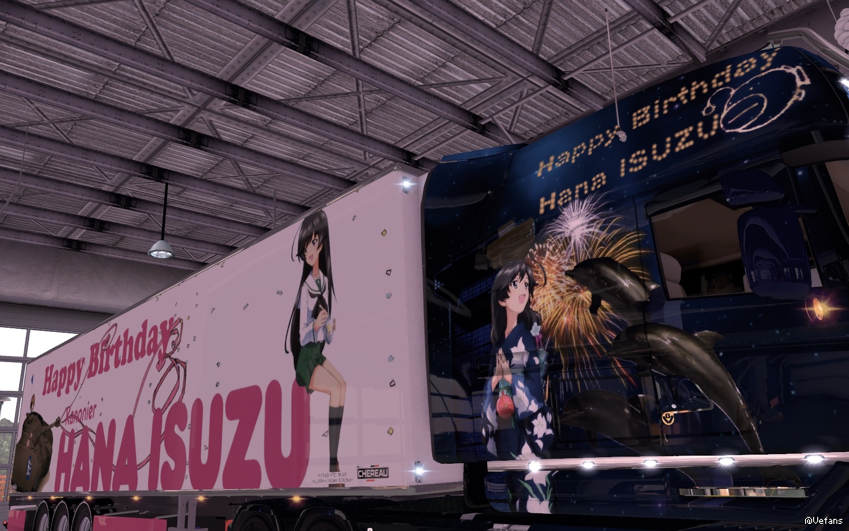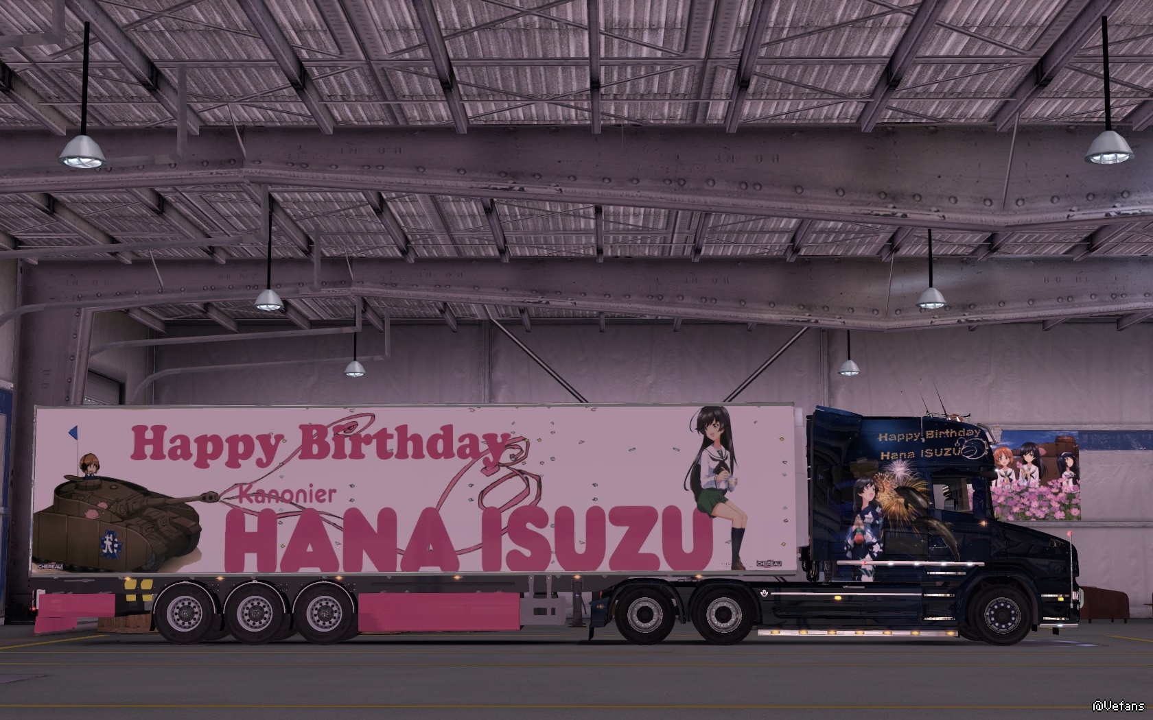 !同时今日是突出部战役之日~~~也哀悼在战争中牺牲的人们~~~愿世界和平~~~其实为什么我这么喜爱大小姐这个角色呢???我觉得她能屈能伸~~~温柔贤惠~~~善解人意~~~散发出一种典型的东方女孩的美~~~自己制作了两台痛车~~~分别是一号车和二号车~~~其中二号车是特意为大小姐生日而定制的~~~里面有大洗的两个地标—海洋塔和车站的海豚雕塑~~~车型是SCANIA T730~~~一号车就是很久之前制作的~~~原型车是夺取2012届