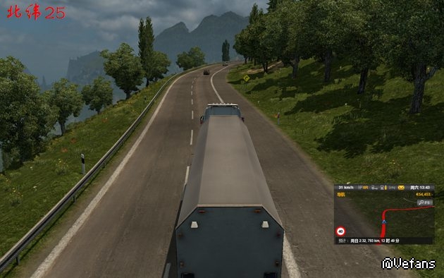 老司机3个月欧卡高速跑到吐,这几天下载EAA地图4.1 V1.25.scs,大爱,1、风景优美2、坡陡弯急3、BUG较多,希望有大神修改,上图: