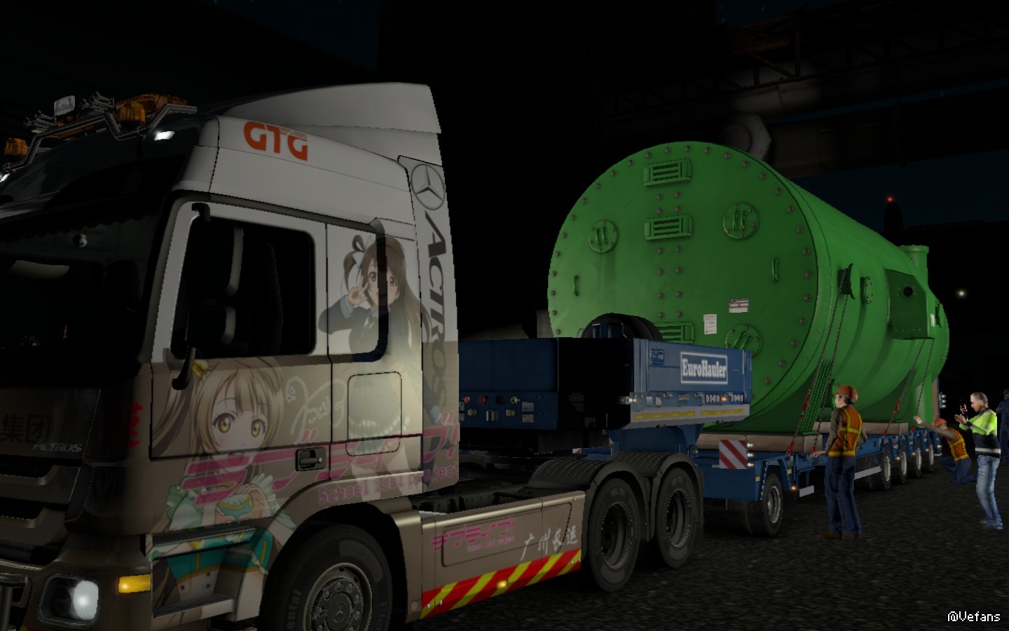 在货场门口堵了一下车之后,我进入了货场,下车找工作人员确认发货单的内容以及详细注意事项,我在单上签了名,工作人员递给了我一张送货单,我拿到单马上跑回车上,开到指定位置与特种挂车对接好,在场的十几位工作人员在做最后的检查中......(这个绿色的庞然大物真的颠覆了我对大件物品的认识,之前学习的时候我只拉过沥青机、火车头、大电缆等,这么大的东西我还是第一次拉hhhhhhhhhhhhhhhh)