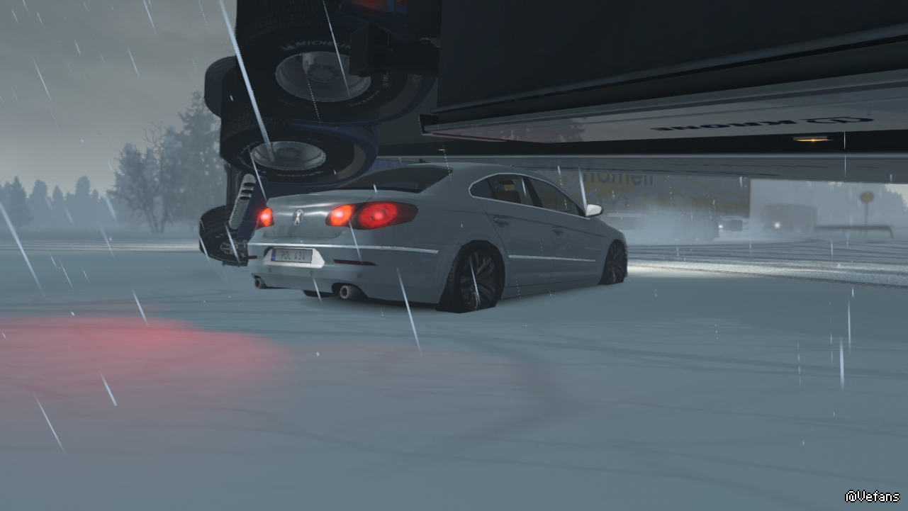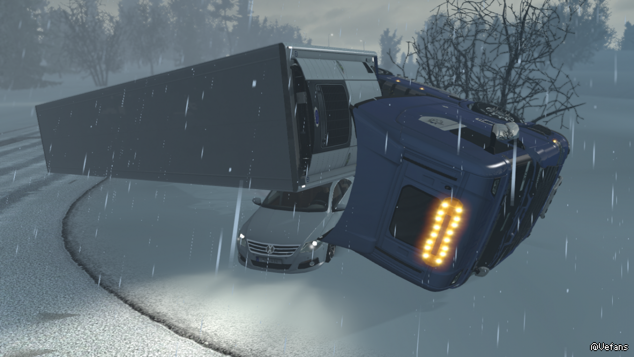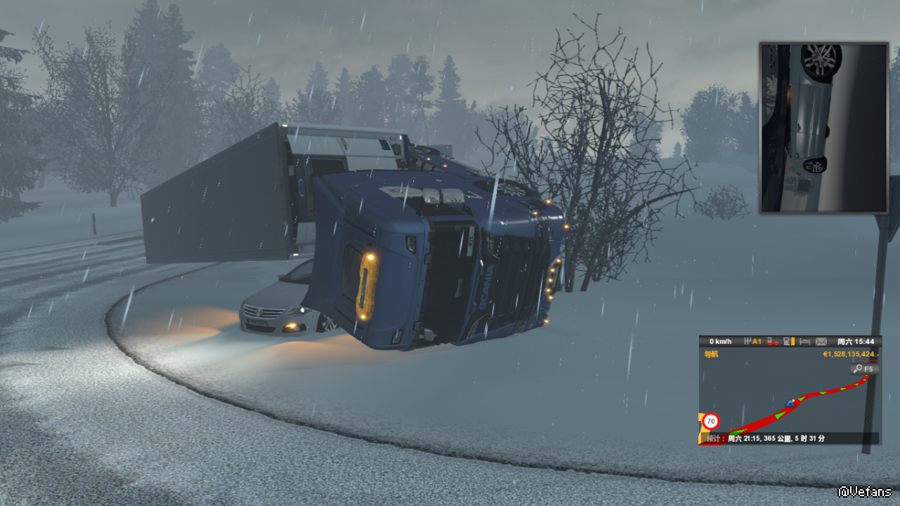 速度太快了,刹不住车,并且严重的推头现象,导致侧翻并压了一辆小车,小车司机一脸懵X