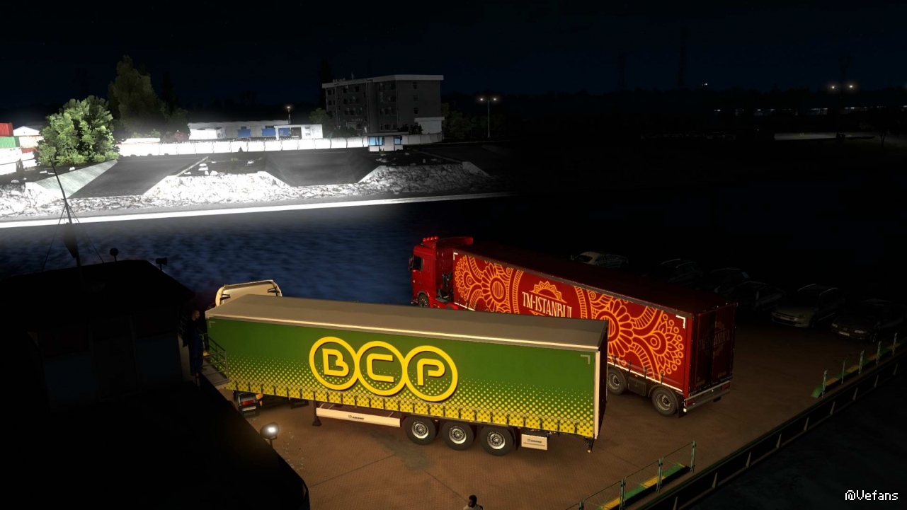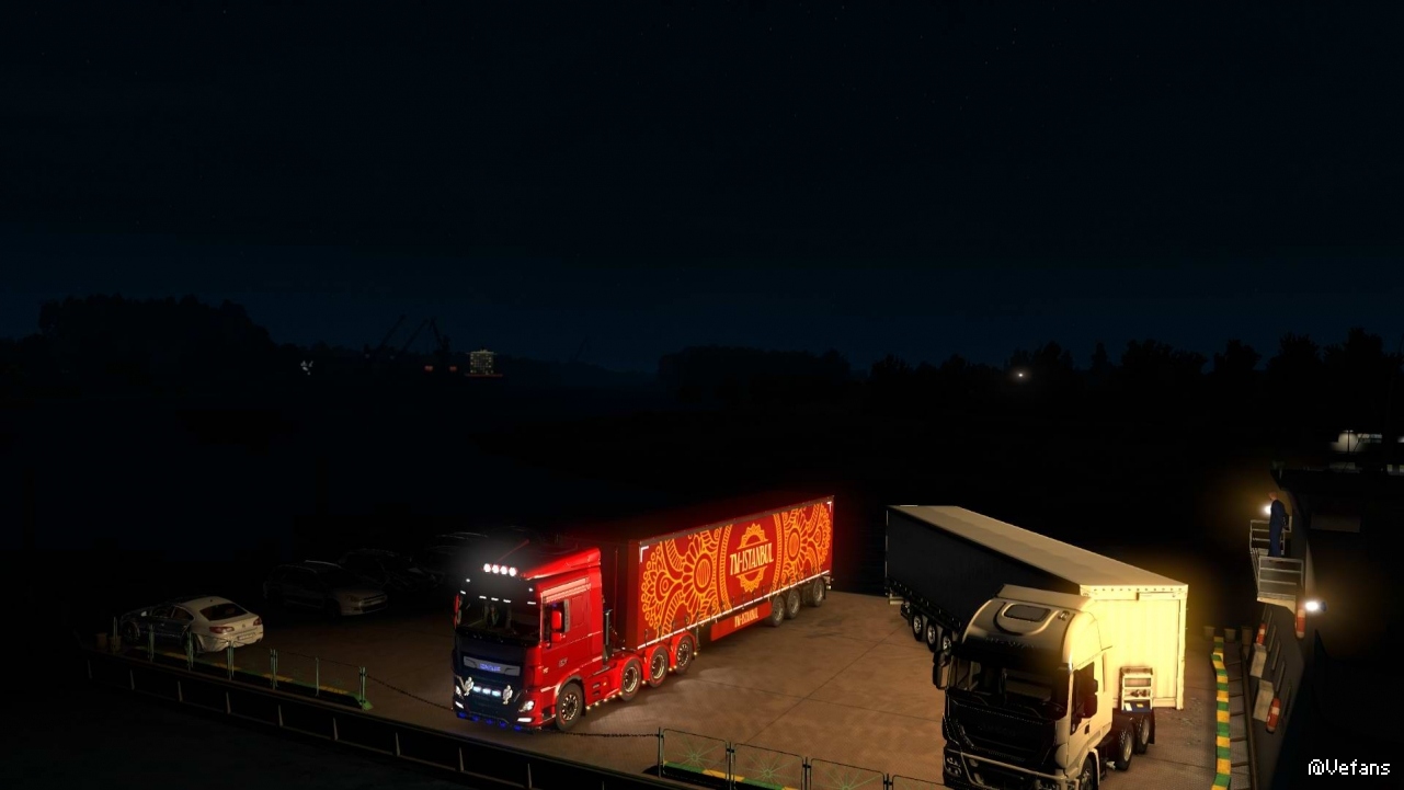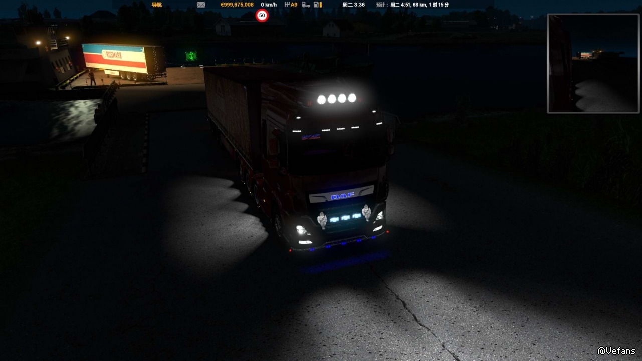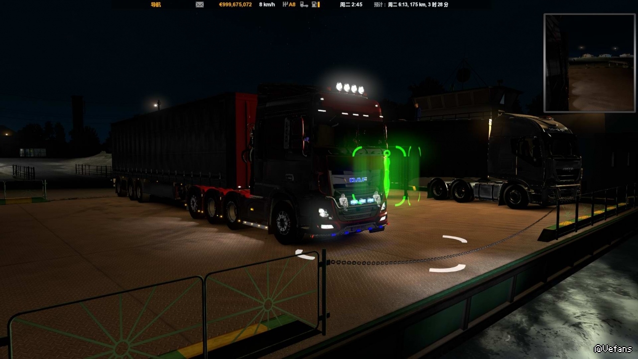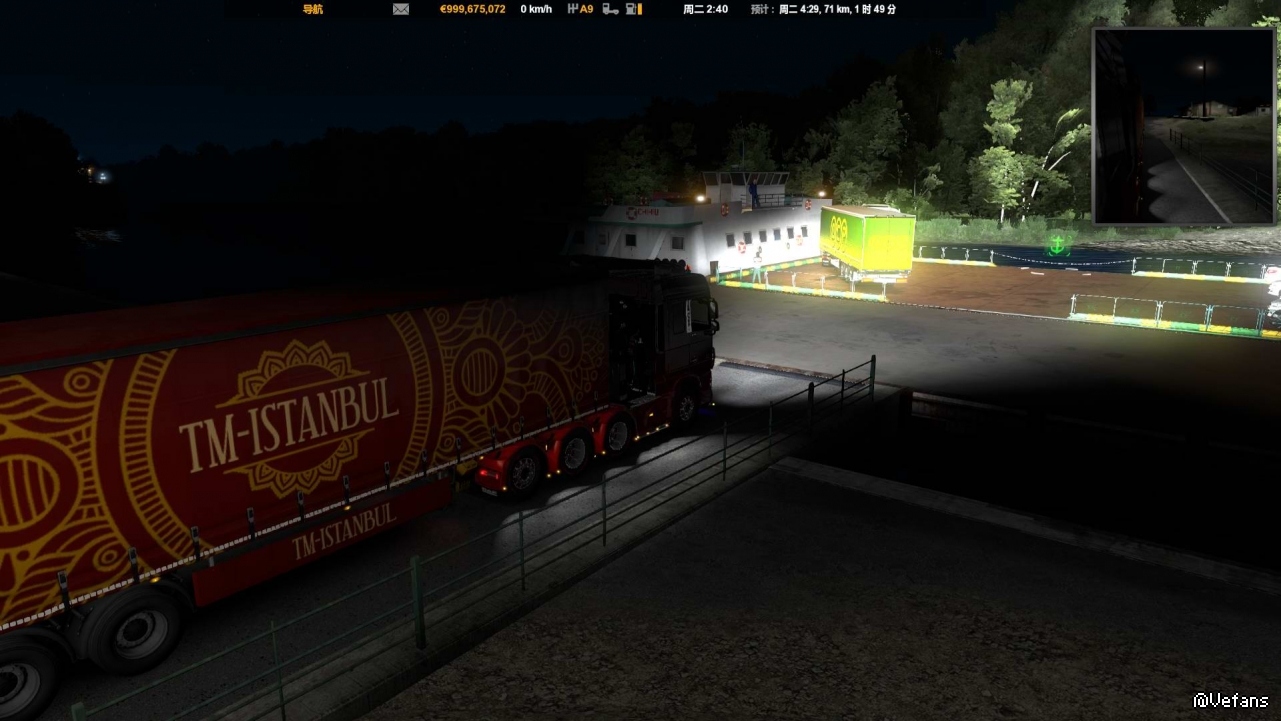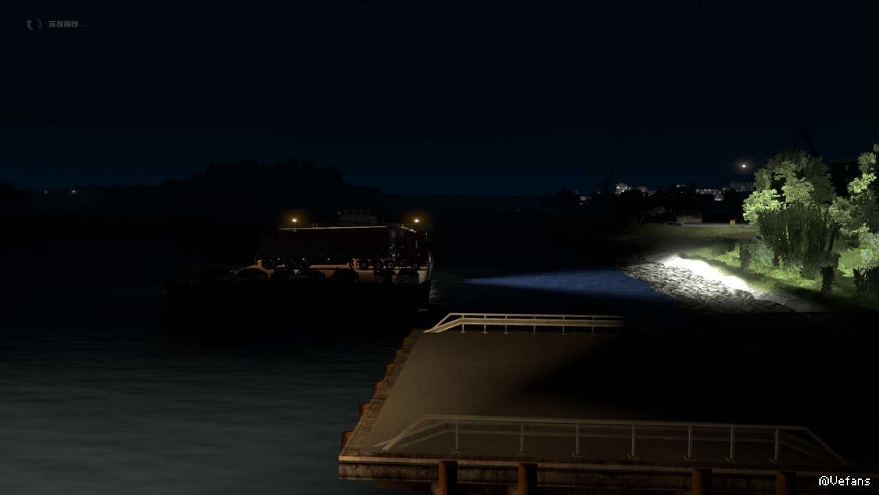这次没有安装军事货柜MOD,拉的是游戏原装货柜,轮渡动画有了