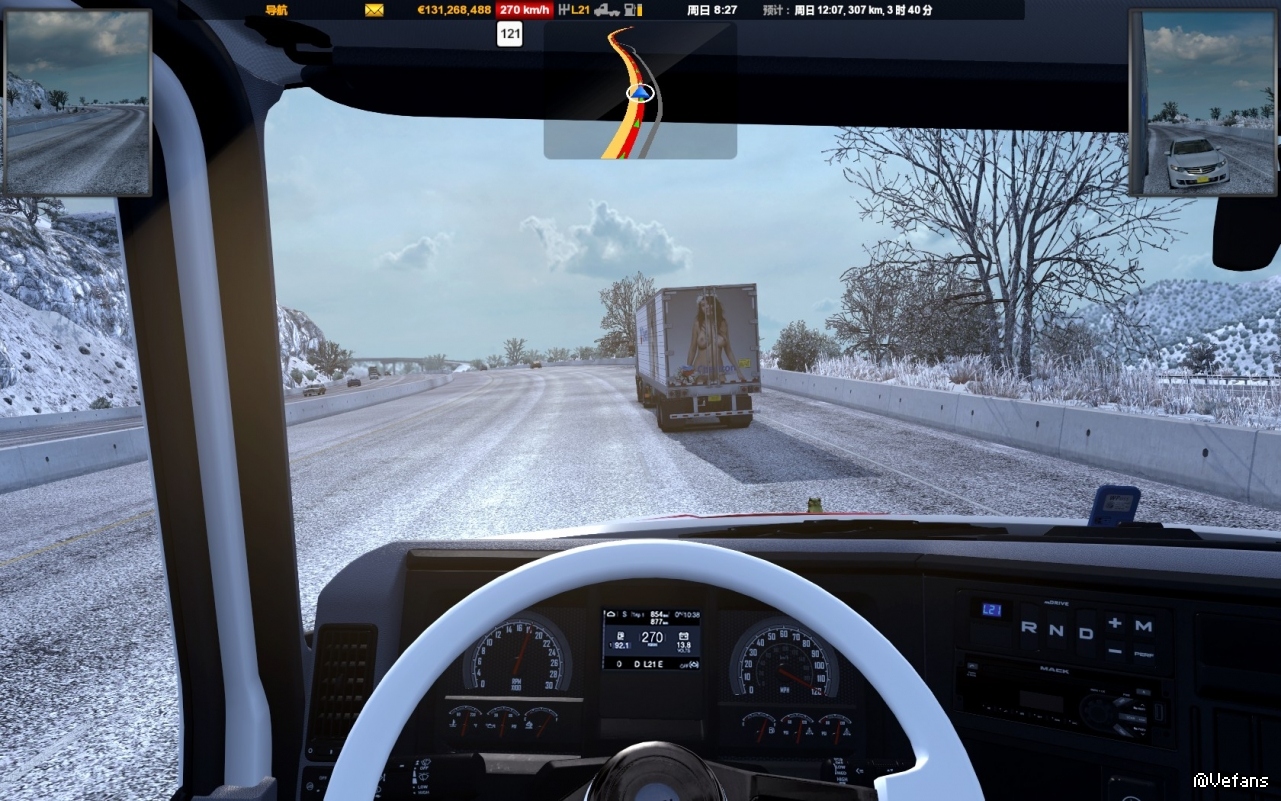 在美卡一不小心又跑出时速270公里,还拉着货。