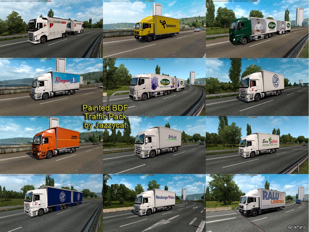 Пак добавляет в траффик 363 БДф с прицепами со скинами реальных компаний.