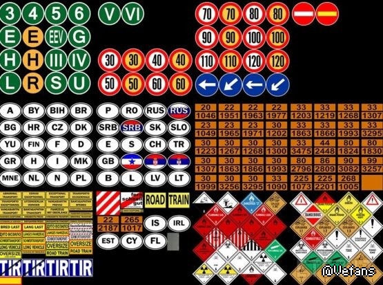 The mod is represented signs marking trucks in different categories country codes, speed limit, warning, ecology warning and others.
