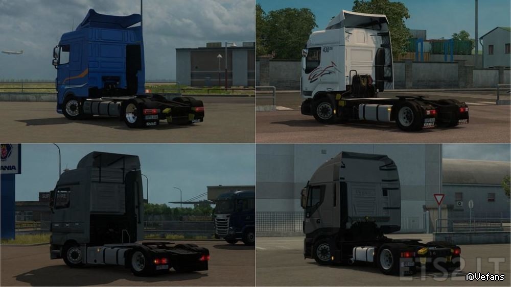 New in v2.2– Added spare wheel for MP3 & New Actros.– Reworked rear fender on New Actros.– Added chrome/steel/painted fueltanks for New Actros, the painted use the base color of the paintjob.– Added new spoilers/fenders for New Actros.– Added shorted spoilers for MP3 MegaSpace cab.– Fixed number plates icons and added plates for Volvo FH16.