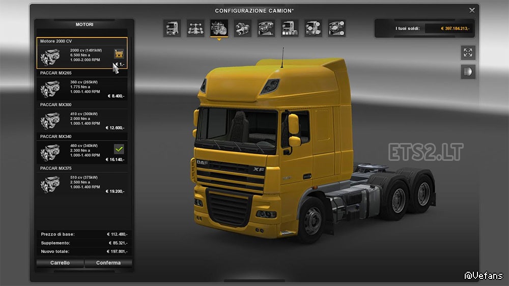 旧版本的引擎DAF XF 2000马力和6500海里,Actros,Hiway,TGX,FH16,Stralis,斯堪尼亚R,