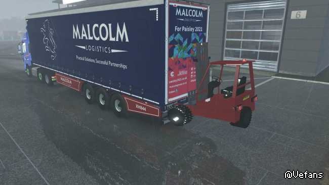 This is a small forklift addon for the rear bumper slot on the owned scs trailers. Works on Flatbeds and Curtainsiders.