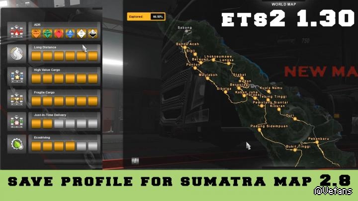 Save Game (Profile) For Sumatra Map V2.8 mod for ETS2 1.34.x.