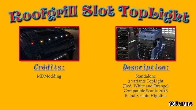 Roofgrill slot TopLight scania 2016 for Euro truck simulator 2
