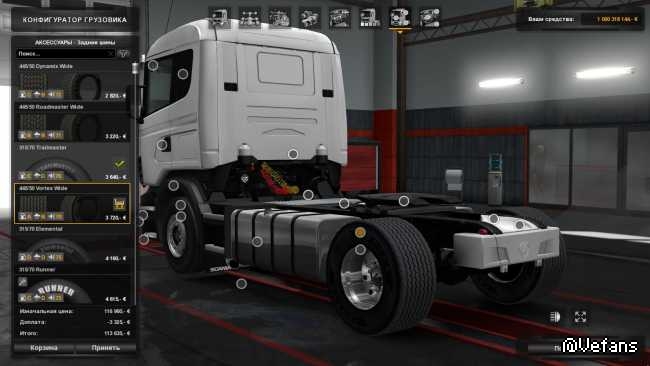 该型号将 ATS的宽后轮和轮胎(445/50超级单驱动轮胎)复制到ETS2。