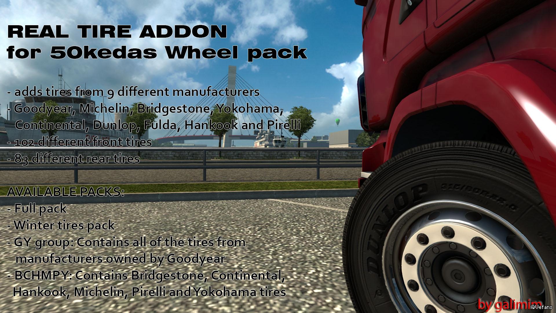 It includes 102 different front and 83 different rear tires from some of the biggest tire manufacturers Goodyear, Michelin, Bridgestone, Yokohama, Continental, Dunlop, Fulda and Pirelli!