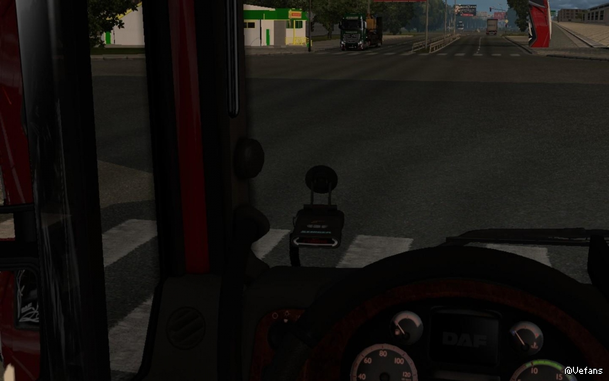 This mod performs the functions of a real car radar-detector Stinger in the game. He notifies about the approach to the speed cameras and the appearance of police patrols nearby. Voice notification is taken from the original Stinger S500 firmware. In addition, the mod still performs anti-radar functions, not allowing the police and cameras to detect your speed. The penalty for speeding is always 0 EUR. Well, of course in the fashion there is a new add-on radar detector, which is installed in the corner of the windshield on the same dumis as the default navigator.