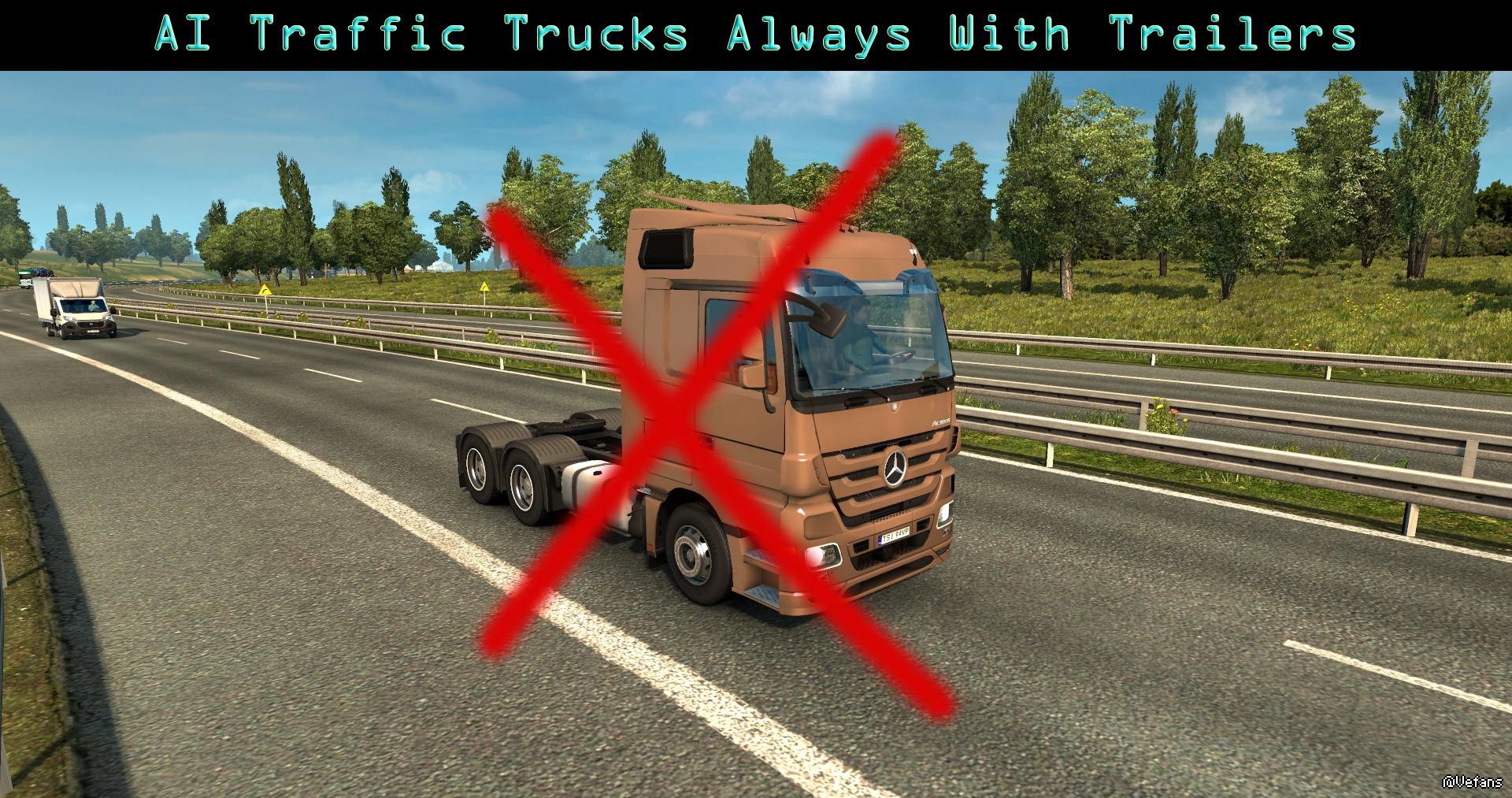 现在所有AI交通卡车在路上总是有拖车。对于任何游戏版本。