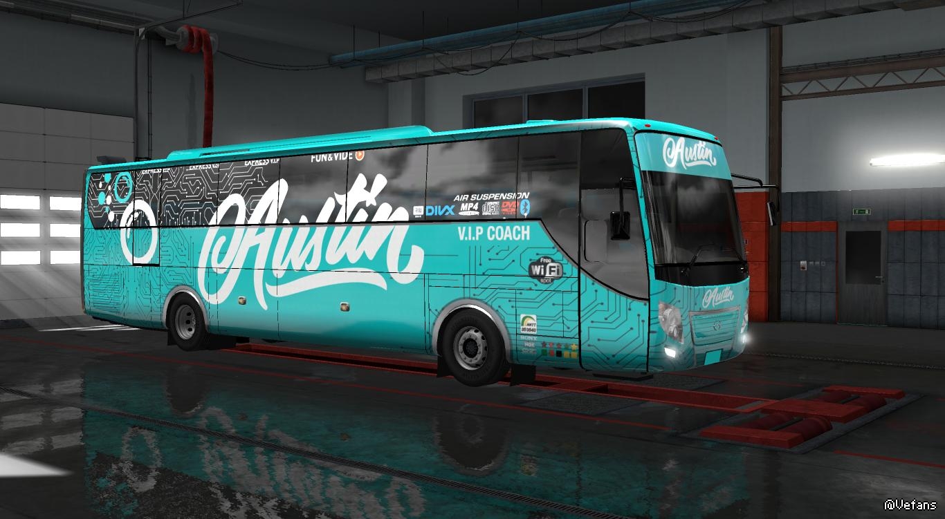 Hey Guys here is another bus from Indonasia, today am sharing this bus with skin mod amongst them my favourite bus Modern Coast, top speed upto 200, right hand drive, works well in version 1.28. 【版权】: