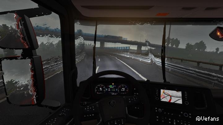 Raindrop V2 mod for ETS2 1.35.x. This mod improve RainDrop on glass effect Without any graphics mod at Video and Screenshot Work for 1.34 – 1.35
