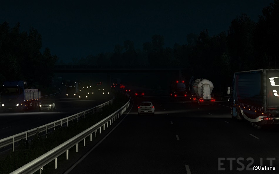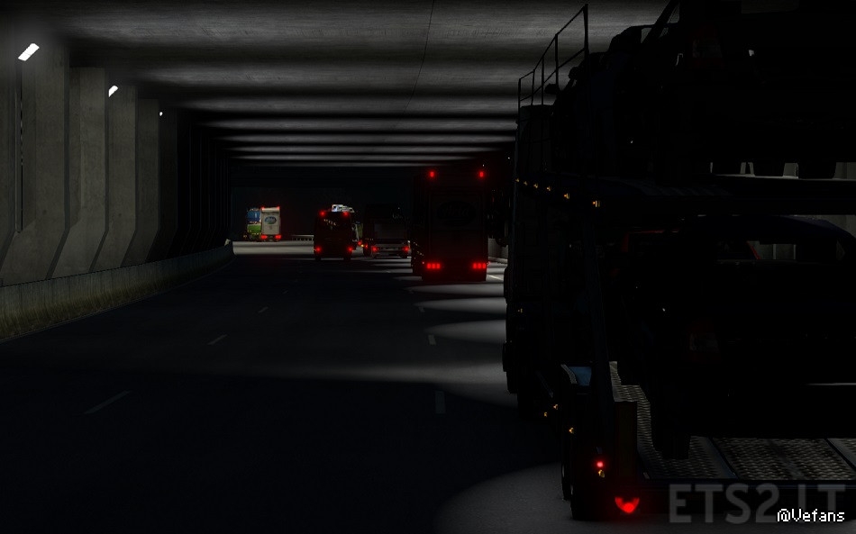 Also added orange side lights, beacon lights, orange blinking (roadworks) lights, white and red vehicke lights.
