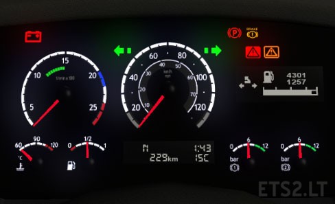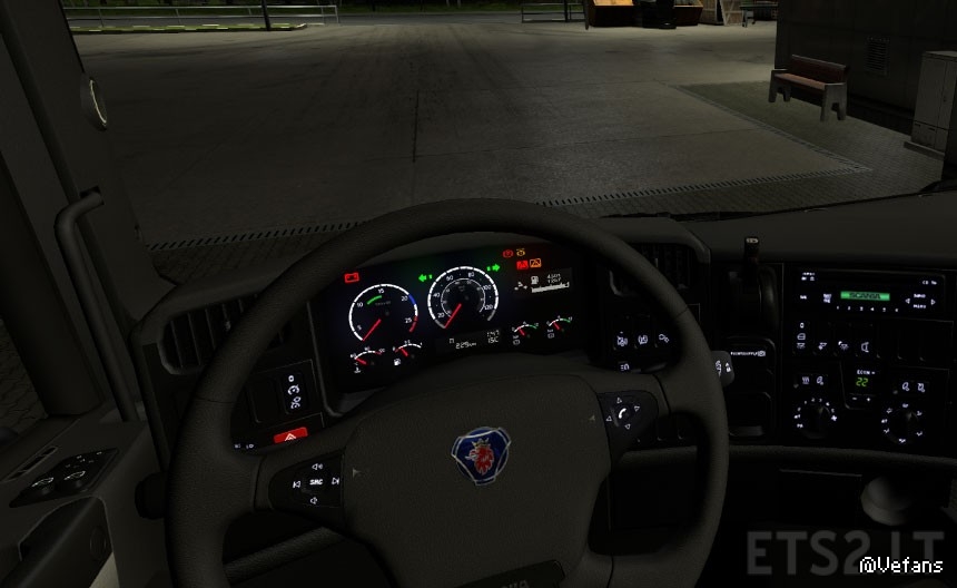 Realistic gauges to get the best visual experence with the truck, it’s only compatible with Scania R & Streamline Modifications V1.5.2.1 RJL