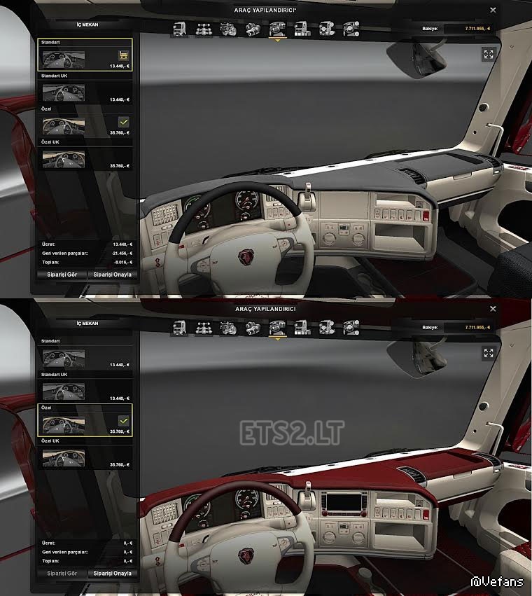 斯堪尼亚R白色和红色内饰1.21x (本地下载)