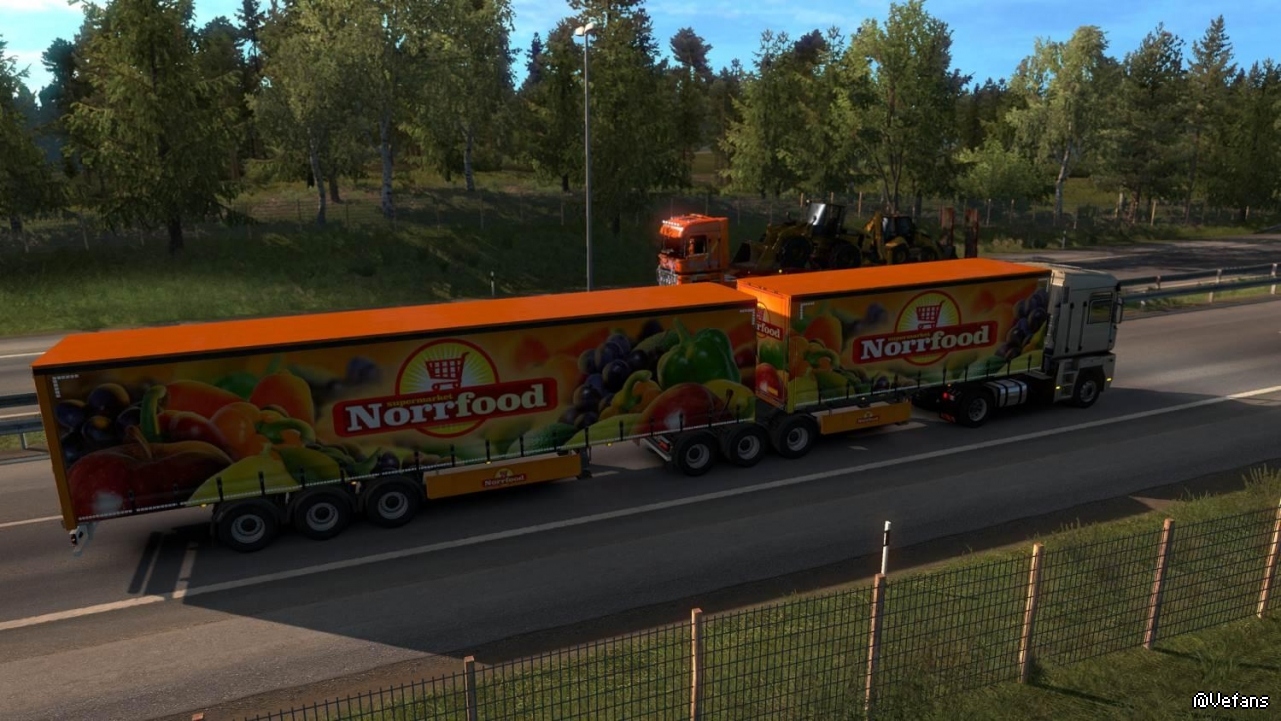 Drawbar and B-double versions of the new SCS box vans, curtainsiders, insulated trailers and reefers; drawbar double Profiliners using the v1.31 model (so you don't need the Krone DLC).
