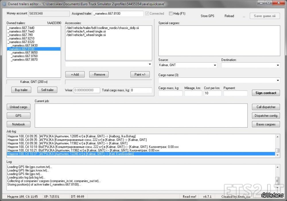 This version supports multi-trailers (doubles, triples, etc.). How to build, load and unload them – see the video “Multiply trailers – build, load, unload.mp4”. While loading the cargo in the trailer, the weight is distributed evenly between the trailer and his truck (trailer leading), but only have the leading no jobs!