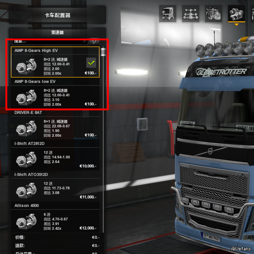 两台精细调整的8档+2爬坡档变速箱(增加)
