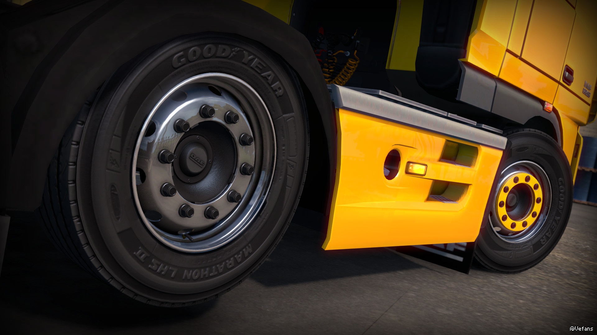 all tires and rims position synced with SCS wheels position (you can use any SCS tire and my rim or SCS rim and my tire combination without weird errors in game)