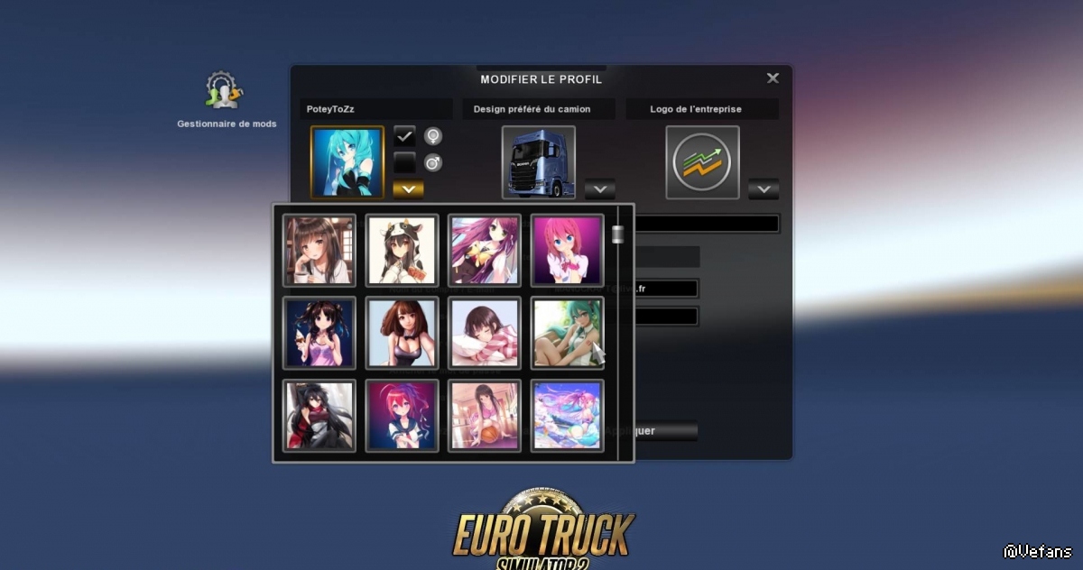 这是一个MOD让你选择一个可爱的动画/漫画字符的女司机。