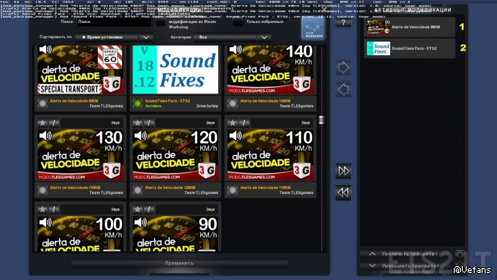 P.S. if you use Sound files Pack, connect the files from the folder: ets 2 + SFP.