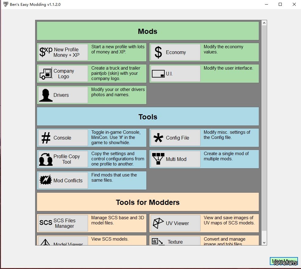 现在我想向大家介绍一下:Ben的Easy Modding(BEM)for Windows。这是我创建的一个程序,可以帮助几乎每个人为ATS和ETS2制作mod。它是完全免费的,你可以使用它,无论你对制作mods知之甚少,或者你自己都是modder。