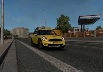 Мод Mini Clubman версия 1.1.1 для Euro Truck Simulator 2 (v1.35.x)АвтономныйПродаётся в MercedesСвой интерьерСвои колёсаЗвукЛайтмаскаЗадний противотуманный свет (активировать с помощью «o»)Шаблон для скинов