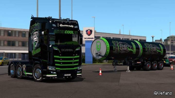 Gas Monkey Energy Scania R + Trailer Skins V1 mod for ETS2 1.35.x.