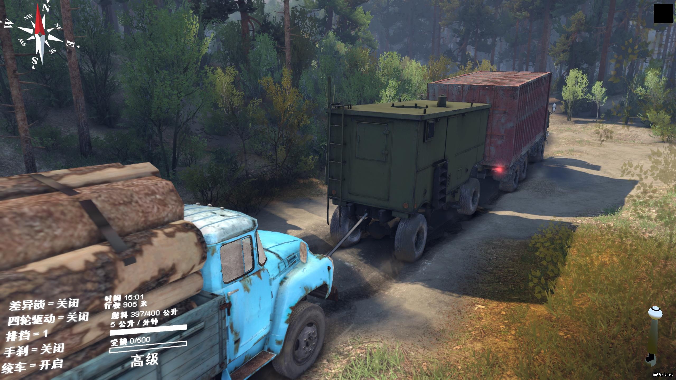 哈哈哈 如图 一个车拖了2个营救点 400维修 一个多功能拖斗 还外带上zil130和一车木头